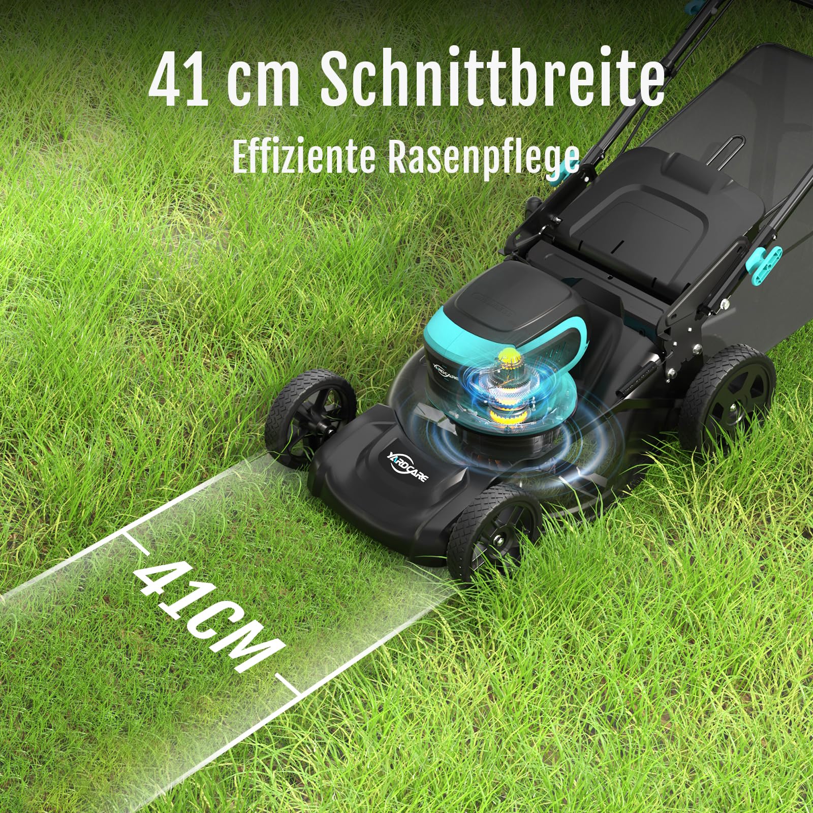 - 【Sicher&Umweltfreundlich】Hochwertige Räder und ein stabiles Fahrgestell sorgen dafür, dass der Mäher nicht leicht umkippt. Der 3-Stufen Sicherheitsstart schützt Sie und Ihre Familie. 2 akkus und ein bürstenloser Motor sorgen für starke Leistung wie ein Rasenmäher mit Benzinmotor. – Kein Gas, kein Öl, keine Emissionen.