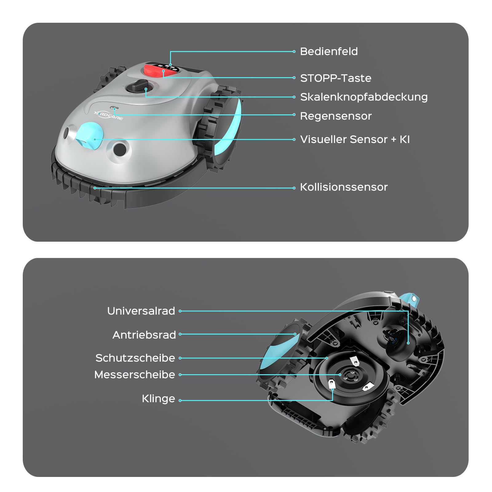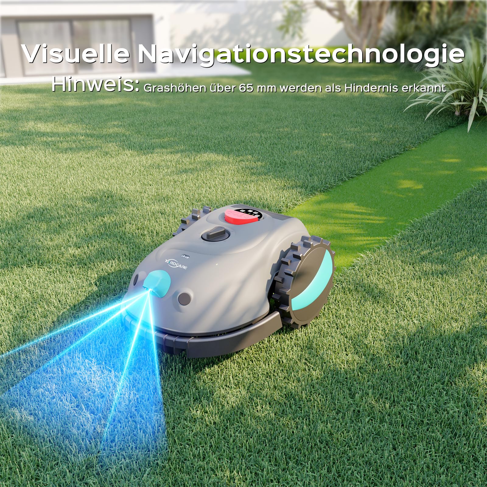 - 【Intelligente Hinderniserkennung】Unser Rasenmäher Roboter ist mit Kollisions- und visuellen Sensoren ausgestattet. Er navigiert präzise per Kamera und erkennt bis zu 150 Hindernisse. – für ein intelligentes und effizientes Mäherlebnis