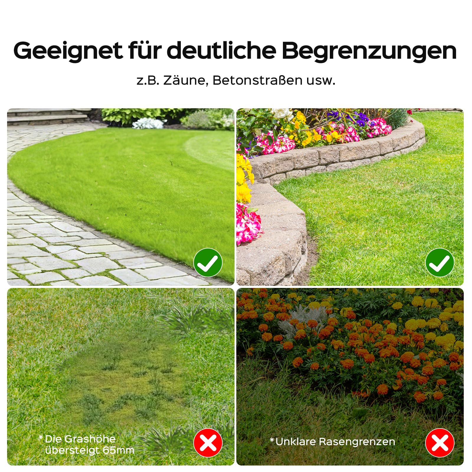 - 【Zeitsparendes Design】Verabschieden Sie sich von der mühsamen und zeitintensiven Installation von Begrenzungskabeln. Außensteckdosen sind ebenfalls nicht erforderlich. Unser Mähroboter ohne Begrenzungskabel ist äußerst einfach zu bedienen. Ersetzen Sie einfach rechtzeitig den Akku (ausgestattet mit 4-Ah-Akku). So sparen Sie wertvolle Zeit und machen die Rasenpflege zum Kinderspiel.